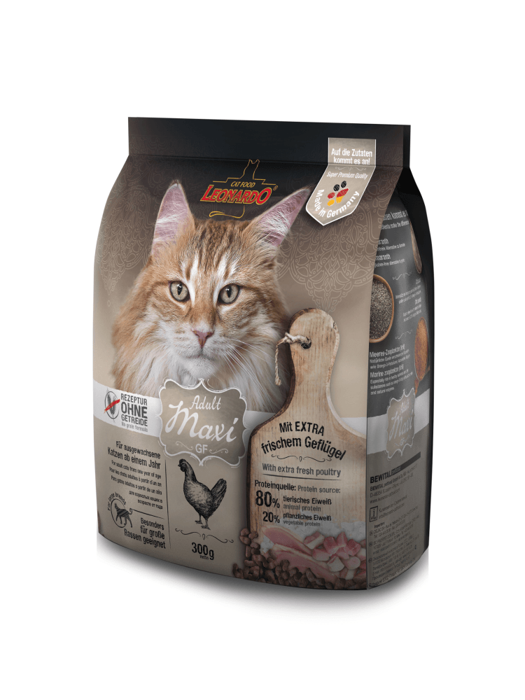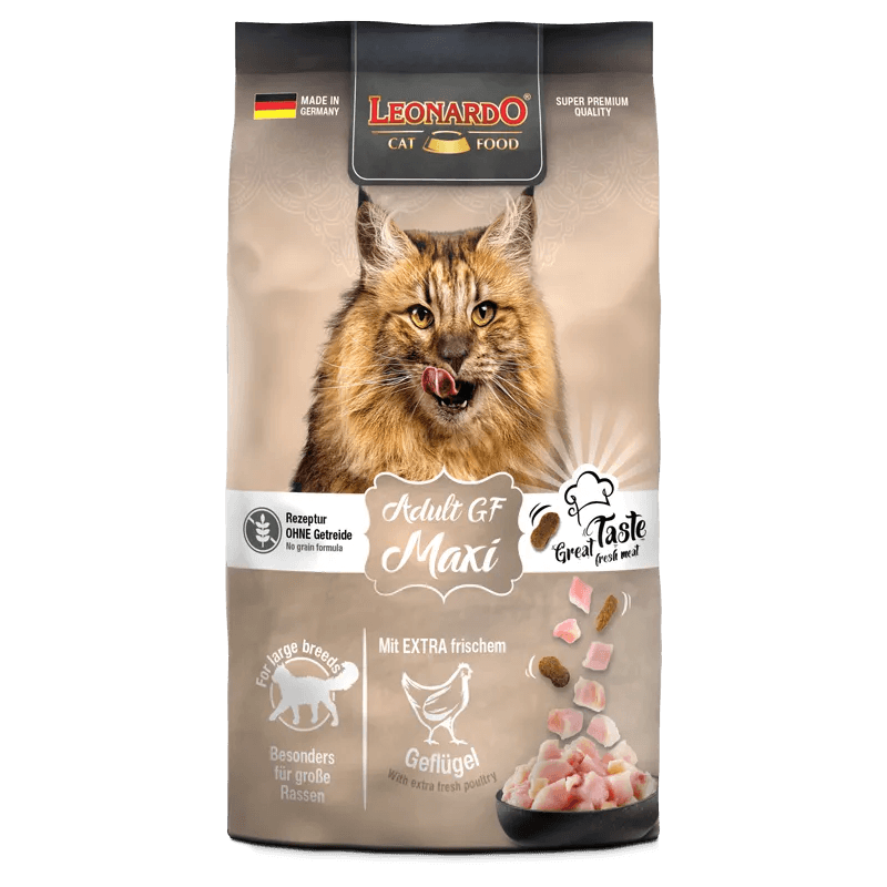 Leonardo Adult GF Maxi es la opción ideal para los dueños que buscan un pienso de alta calidad, adaptado específicamente a las necesidades de gatos de razas grandes, proporcionándoles una dieta nutritiva y deliciosa que apoye su salud y bienestar general.