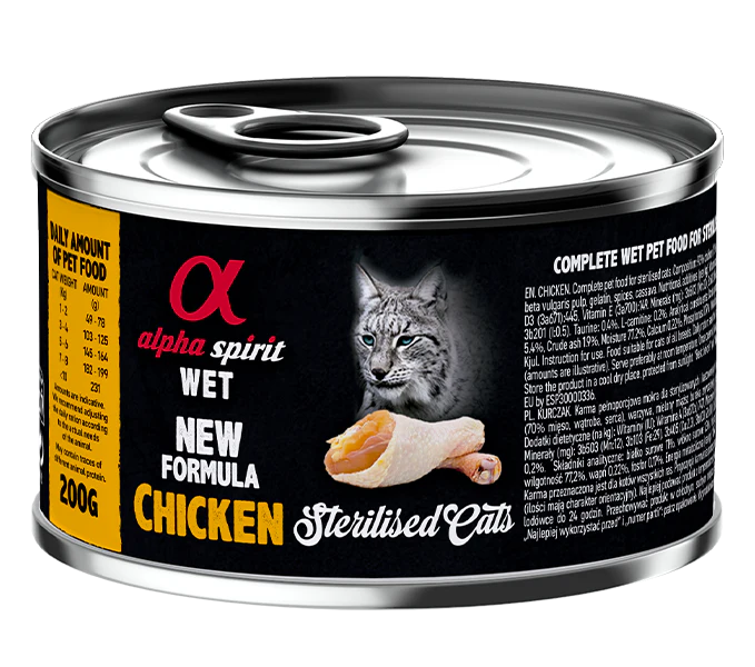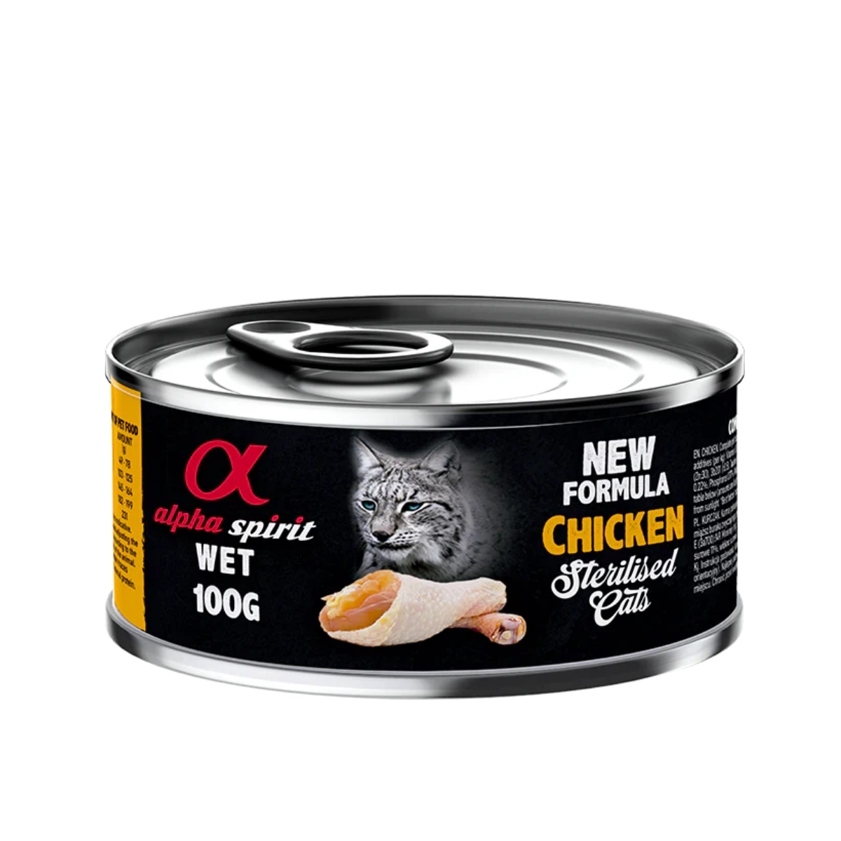 Alpha Spirit Gatos Esterilizado Pollo lata Caja 6X200GR
