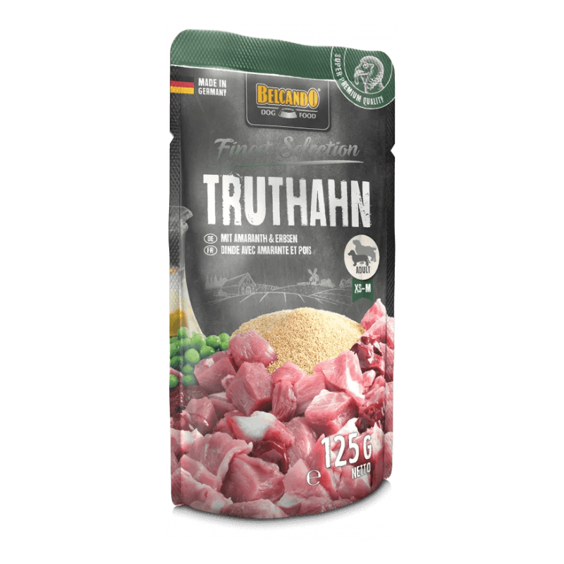 Belcando Pavo, Amaranto y Guisantes es una comida premium para perros, elaborada con ingredientes de alta calidad que aseguran una nutrición equilibrada y saludable. Esta receta contiene carne de pavo, una fuente de proteína magra y altamente digestible, ideal para perros con sensibilidades alimentarias o aquellos que necesitan una dieta baja en grasas.