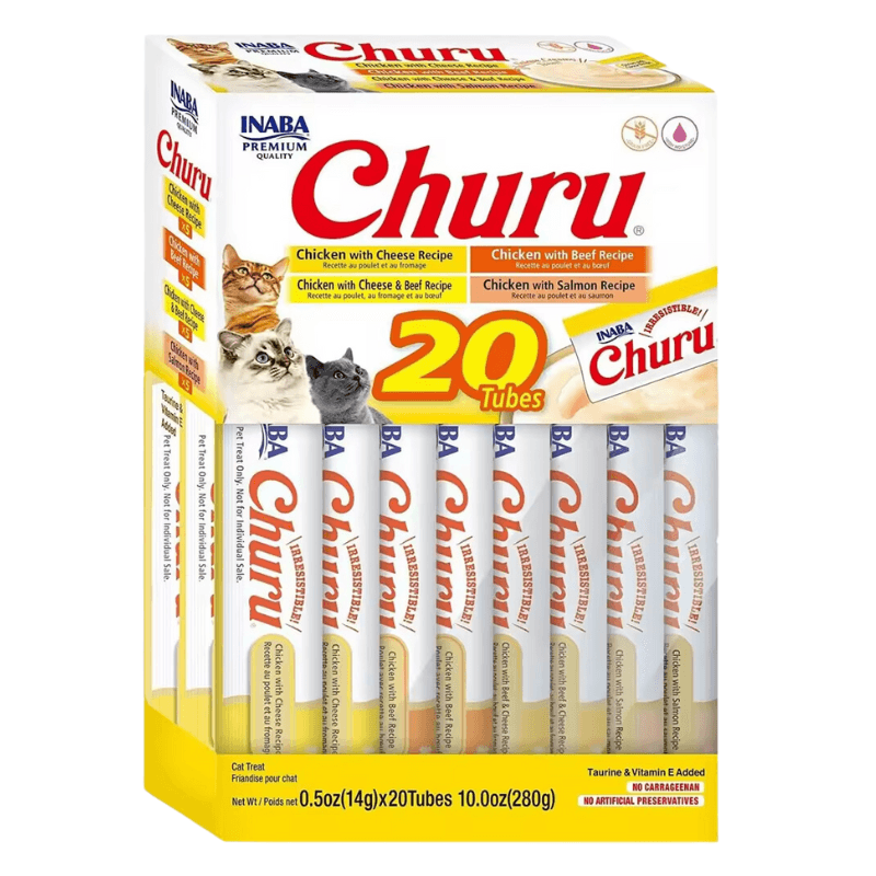 Cada delicioso y cremoso tubo de Churu contiene 91% de humedad y solo seis calorías, lo que lo convierte en un refrigerio saludable. ¡Es una décima parte de las calorías de las golosinas secas tradicionales para gatos!