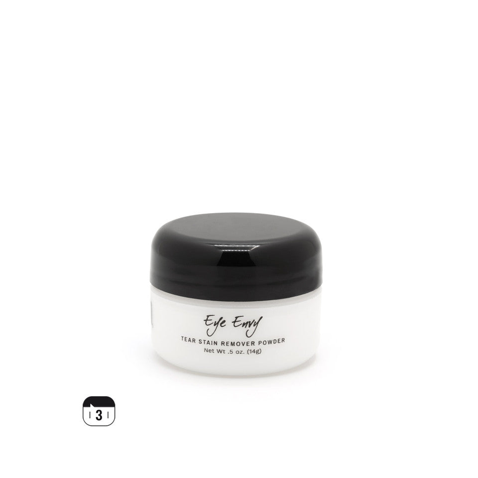 3️⃣ Secar – El Polvo absorbe la humedad, repele las lágrimas y previene la formación de nuevas manchas.