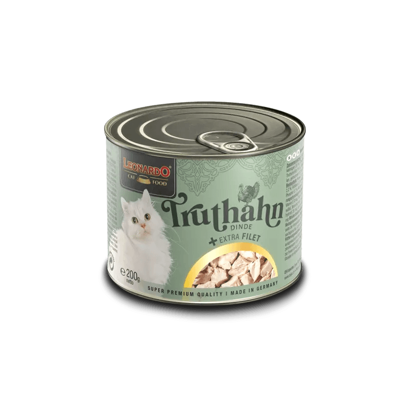 Disfruta del exquisito Leonardo Pavo con Extra Filete, un menú gourmet diseñado para ofrecer un placer puro y natural a tu mascota. Este alimento húmedo se elabora con un alto contenido de carne de pavo de la mejor calidad, enriquecido con trozos de filete extra sabrosos que harán las delicias de cualquier paladar felino. Cocinado suavemente en su propio jugo, este menú se convierte en una irresistible delicia de carne, ofreciendo una experiencia de masticación única.