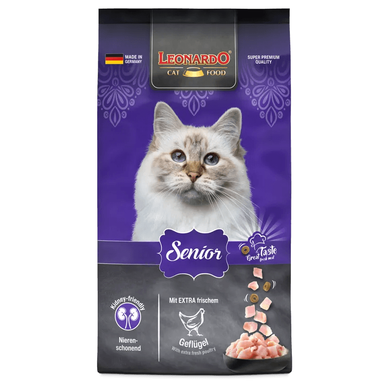 A medida que los gatos envejecen, sus necesidades nutricionales cambian. Leonardo Senior está formulado específicamente para adaptarse a estos cambios, asegurando que tu gato mayor se mantenga en forma y con buena salud a lo largo de los años. Con menos necesidad de energía y un sistema inmunológico que puede debilitarse con el tiempo, los gatos mayores requieren un alimento que les proporcione todos los nutrientes esenciales sin sobrecargarlos con calorías innecesarias.
