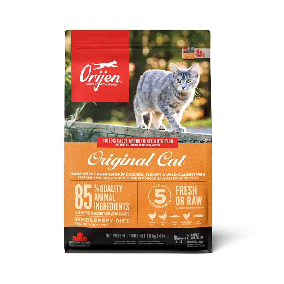 Ayude a su gato a prosperar con el poder de las recetas ricas en proteínas que proporcionan la máxima nutrición. Como carnívoros estrictos que son, los gatos necesitan una dieta biológicamente apropiada rica en proteínas y grasas procedentes de una variedad de ingredientes animales. La dieta Orijen Original Cat está elaborada con pollo y pavo frescos o crudos de corral y con pescado salvaje. Repleta de ingredientes animales de presa entera, como aves de corral, pescado, órganos y huesos, la dieta Orijen Original Cat está elaborada con las partes más nutritivas y suculentas de las presas para proporcionar la nutrición que los gatos necesitan. Con un 85% de ingredientes animales de calidad y un recubrimiento de hígado liofilizado, esta dieta no tiene comparación.