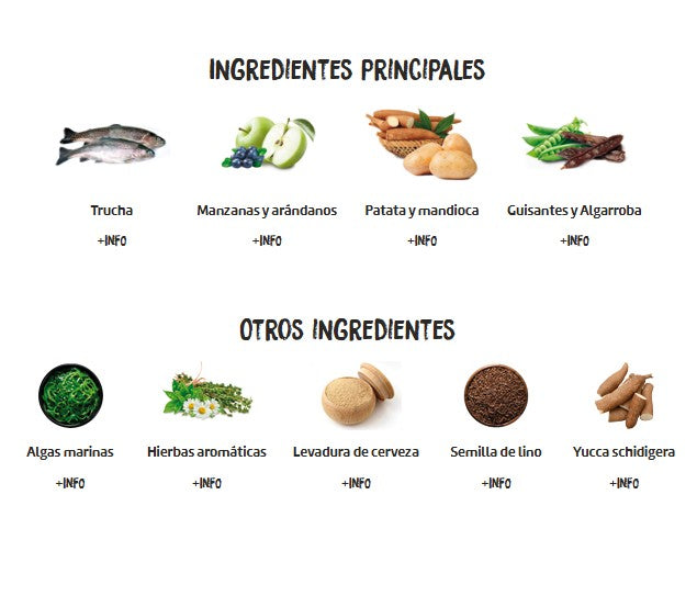 Pienso grain free para perros adultos, basado en proteína de trucha fresca, que es altamente digestible y de bajo potencial alergénico. Su formulación sin cereales está enriquecida con aceites ricos en ácidos grasos omega-3 para favorecer la salud cardiovascular y cutánea. Además, incluye prebióticos naturales que apoyan la microbiota intestinal, mejorando la digestión y absorción de nutrientes.