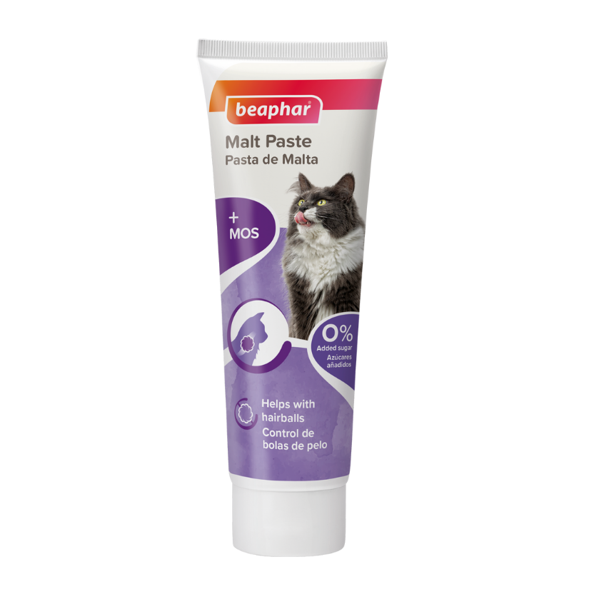 Pasta de malta con doble acción para ayudar a eliminar las bolas de pelo y mejorar el funcionamiento intestinal en gatos. Su exclusiva fórmula BIO-MOS favorece una flora intestinal sana, mientras que sus aceites y grasas proporcionan energía y los MOS aportan calcio para dientes y huesos fuertes.