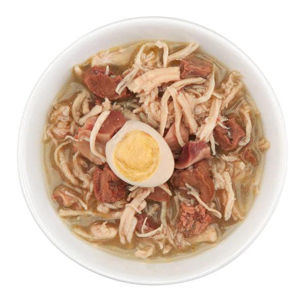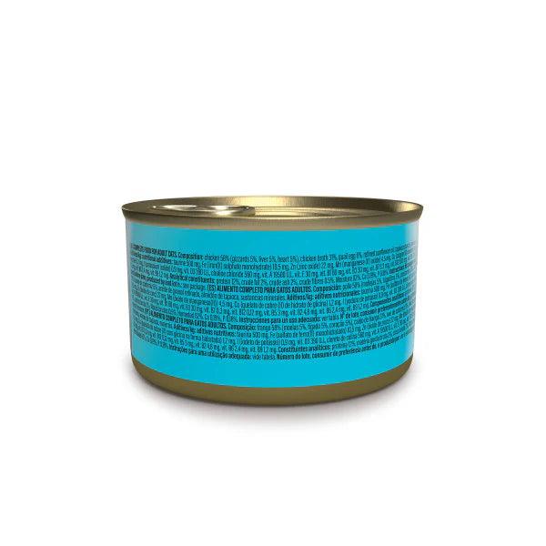 Comida húmeda completa y equilibrada, especialmente formulada para gatos adultos. Esta receta está repleta de proteínas de alta calidad, provenientes de auténticos filetes de pollo sumergidos en un sabroso caldo. Además, incluye nutritivos trozos de corazones, hígados y mollejas, junto con un apetitoso huevo de codorniz, lo que asegura una nutrición rica y variada.