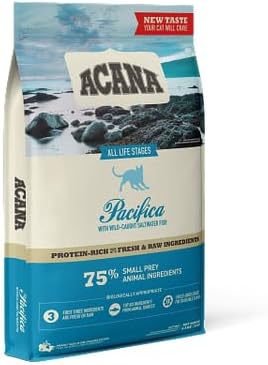 Pienso sin cereales con pescado para gatos, todo el pescado es capturado mediante técnicas de pesca sostenible. Pienso completo para gatos, con un alto contenido en proteínas y reducido nivel de carbohidratos. Acana Pacifica se elabora con carbohidratos de absorción lenta como la calabaza.