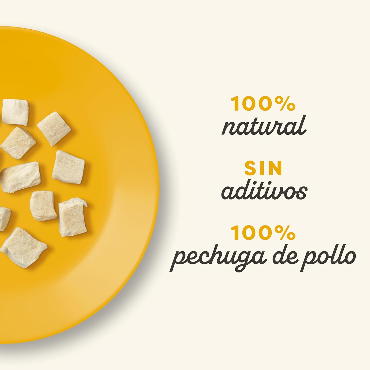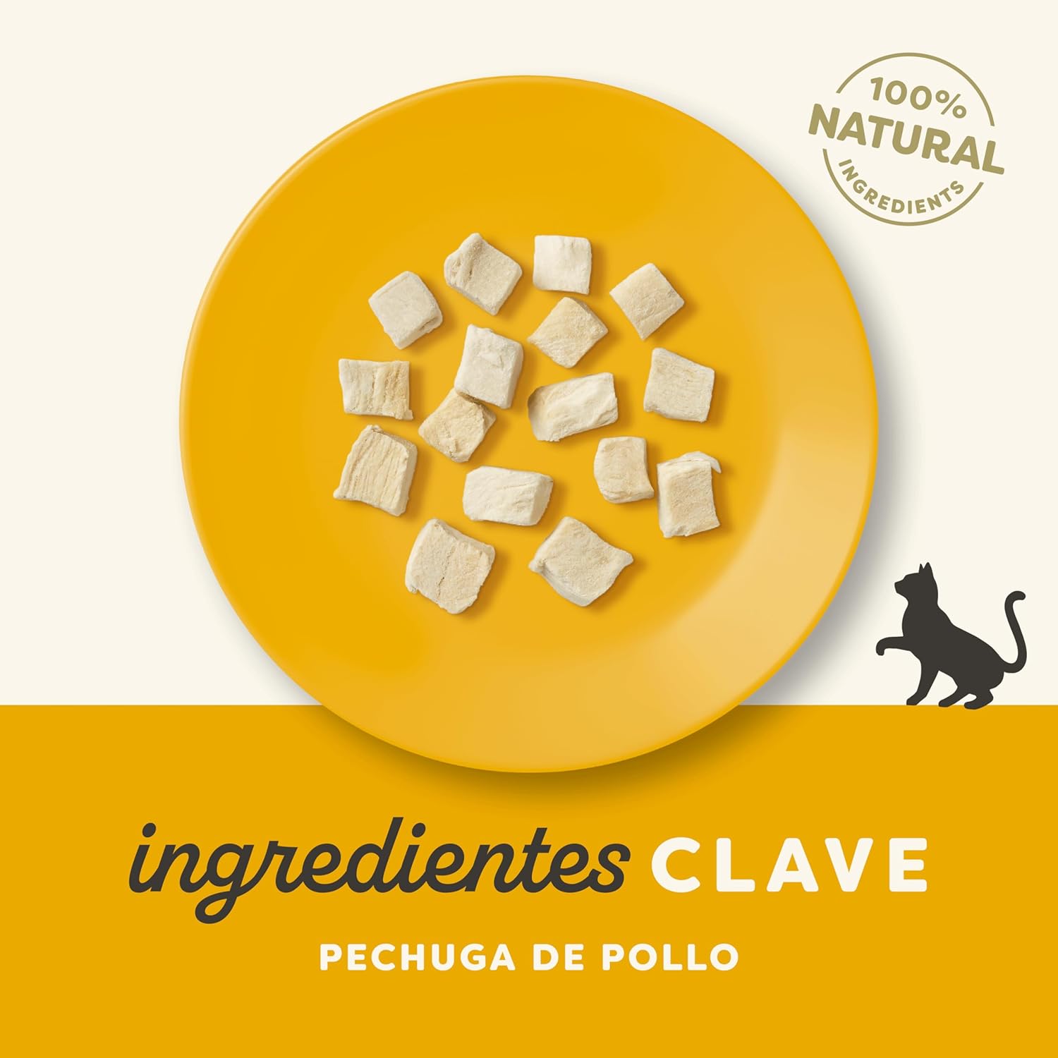 Ingrediente único, sabor excepcional: Estos snacks liofilizados están hechos únicamente con pechuga de pollo de alta calidad, sin aditivos artificiales ni conservantes. La liofilización preserva todo el sabor y los nutrientes naturales, ofreciendo a tu gato una experiencia gastronómica irresistible.