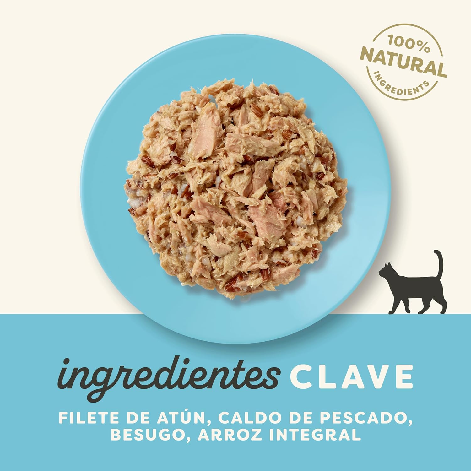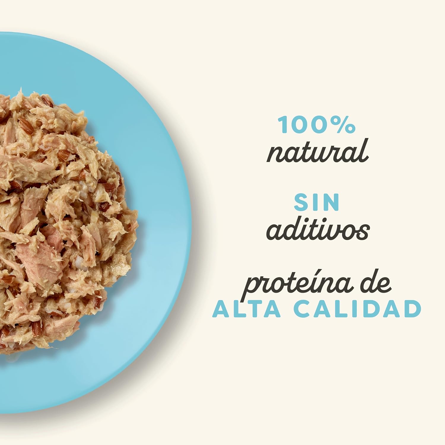 Ingredientes: filete de atún 70%, caldo de pescado 23%, besugo 5%, arroz integral ,2%