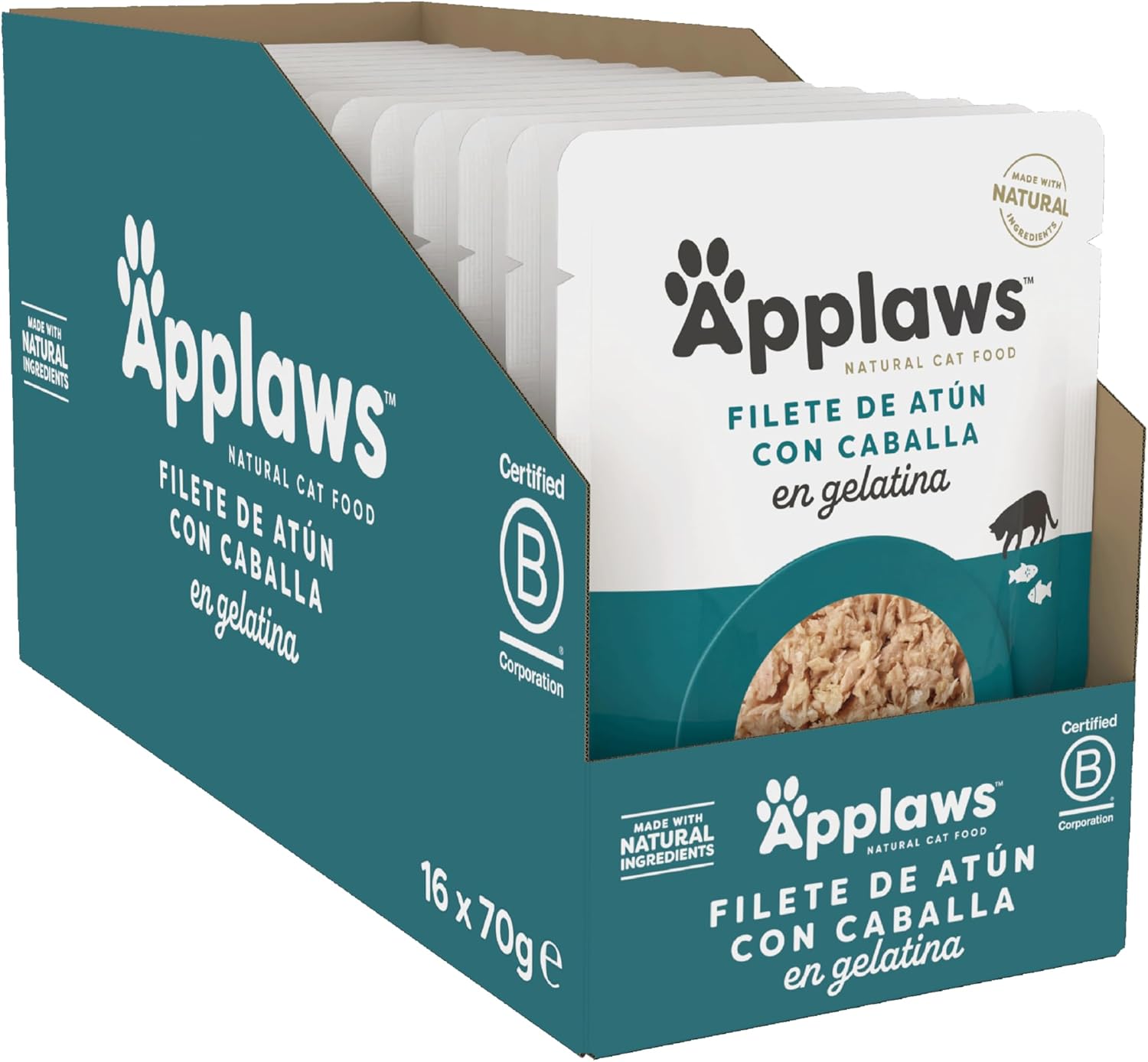 Applaws Cat Sobre Filete De Atun Caballa gelatina - Pack 16 x 70 gr