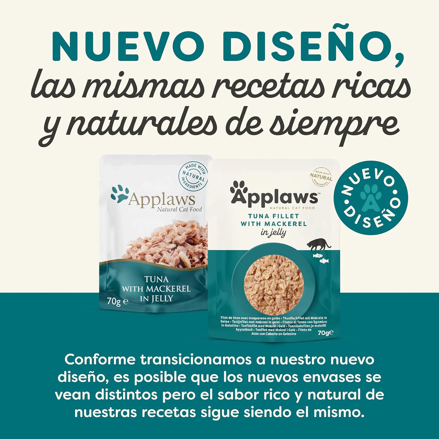Filete de atún con caballa en exquisita gelatina natural: Esta sofisticada combinación de Applaws fusiona la nobleza del filete de atún con la intensidad nutritiva de la caballa, creando una sinfonía marina que despierta todos los sentidos felinos. Con un 55% de filete de atún y 5% de caballa fresca, cada sobre de 70g ofrece una experiencia gastronómica que equilibra sabor y nutrición a la perfección.