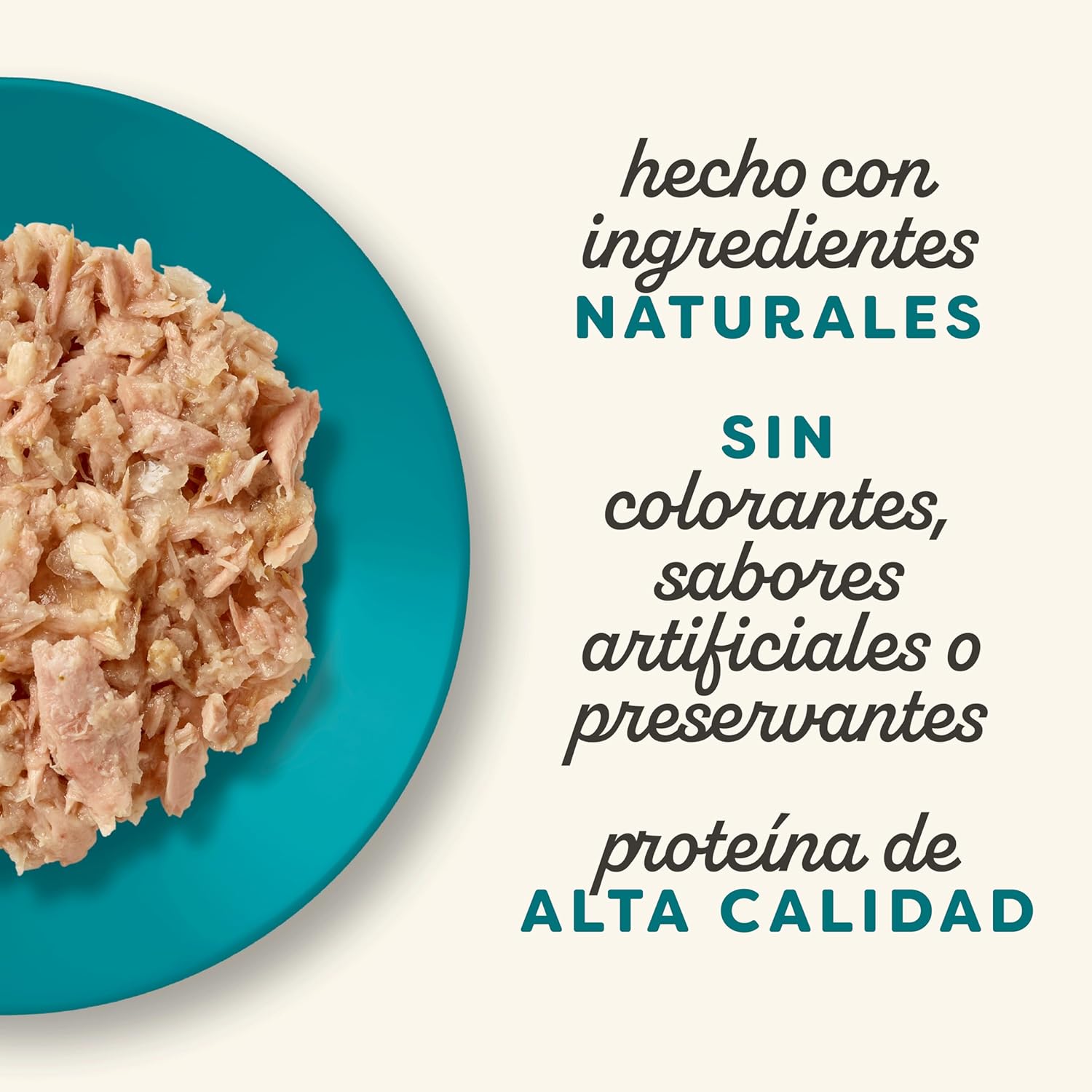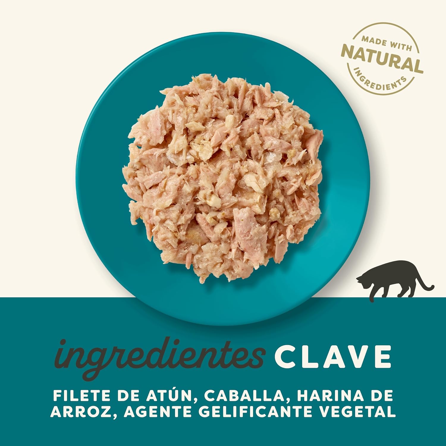 Composición: Filete de atún (55%), caballa (5%), harina de arroz, agente gelificante vegetal natural.