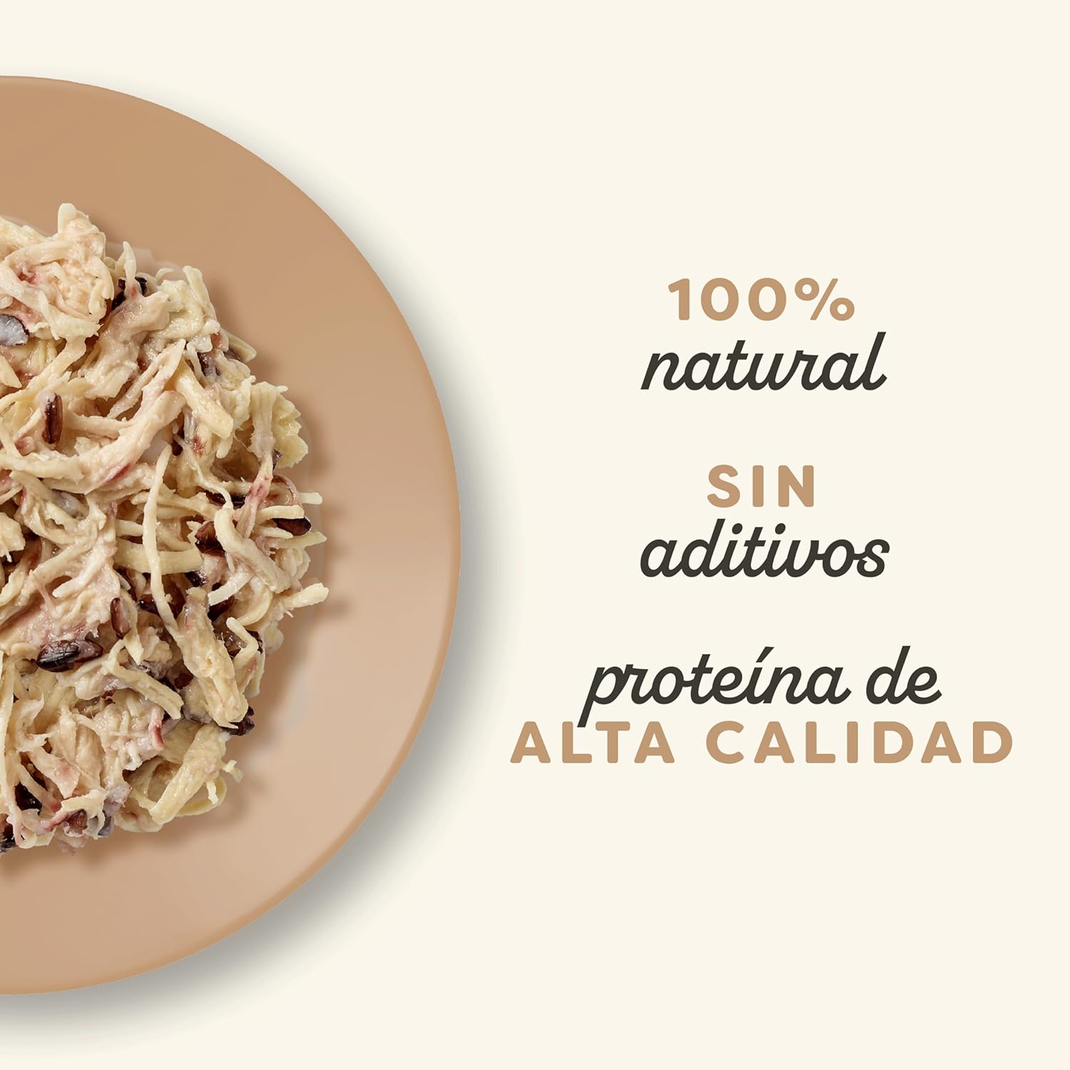 Ingredientes: pechuga de pollo 75%, caldo de pollo 23%, arroz salvaje 2%