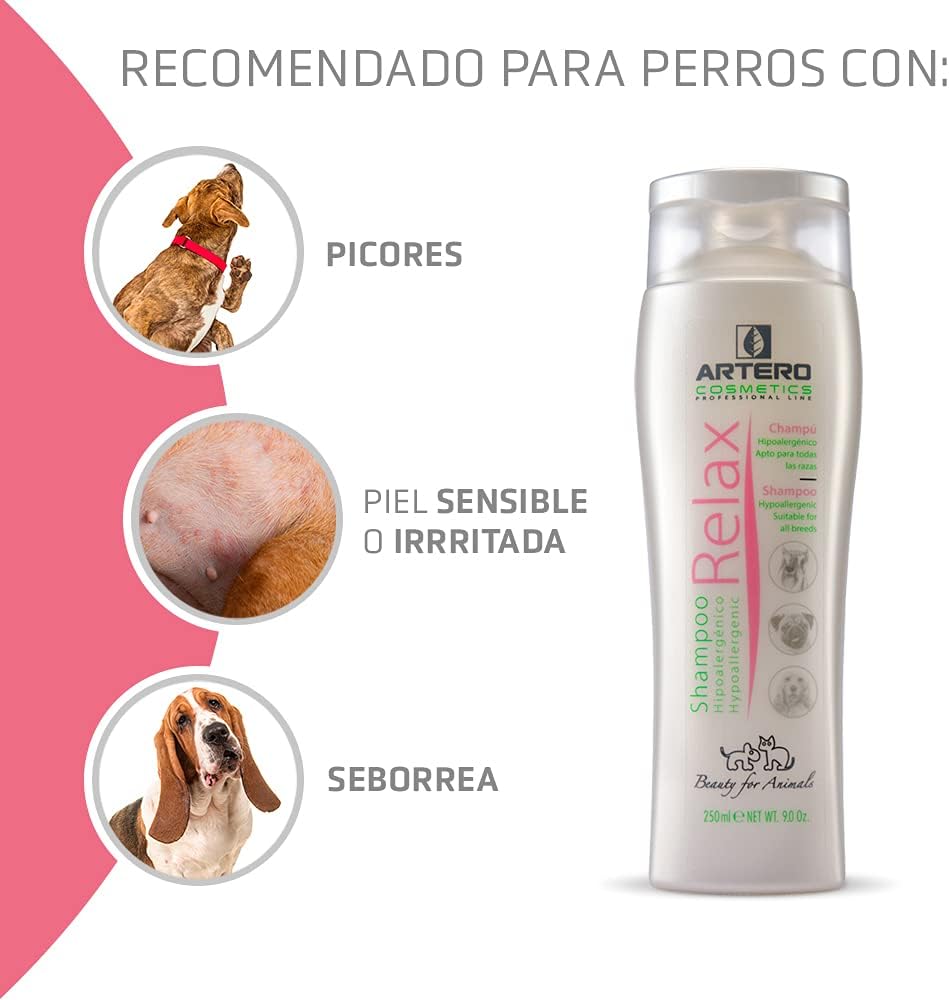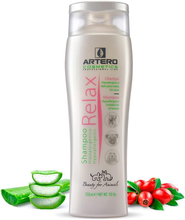 Champú hipoalergénico especializado para perros y gatos con pieles sensibles, irritadas, delicadas o con problemas de picores. Apto para todas las razas y edades, especialmente recomendado para mascotas con dermatitis atópica.