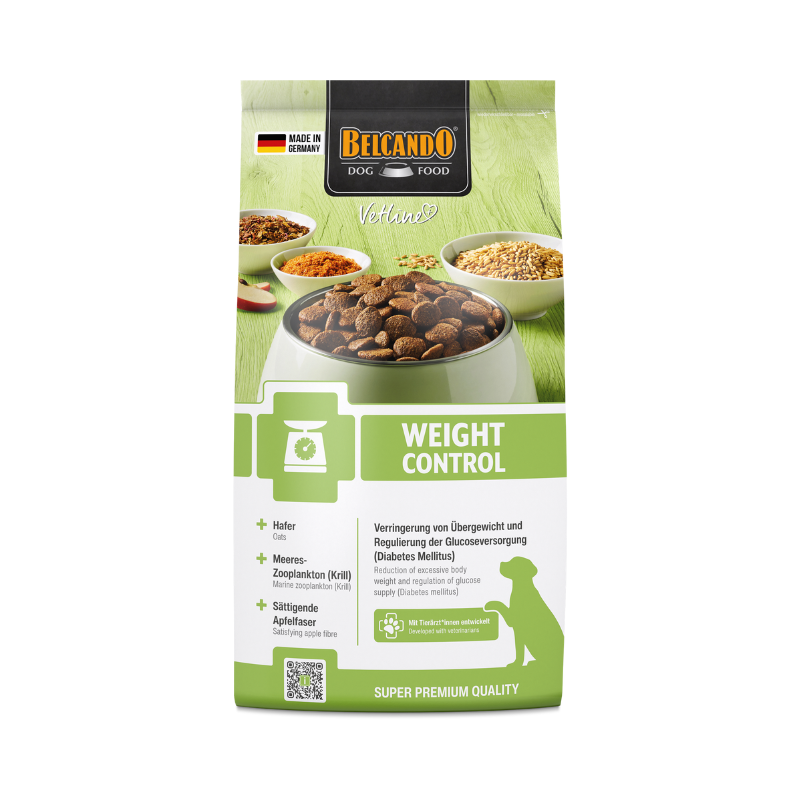 Belcando Vetline Weight Control está pensado para perros con sobrepeso o diabetes que necesitan una dieta específica prescrita por el veterinario. Desarrollado con ingredientes de primera calidad, combina carne fresca de pavo, huevo y superalimentos como lo krill, ricos en ácidos grasos omega-3, y fibra de manzana saciando que ayuda a controlar el hambre. Disponible en formato seco o húmedo, Vetline Weight Control garantiza un sabor excelente mientras facilita la transición alimentaria y ayuda a mantener tu perro sano y en forma.
