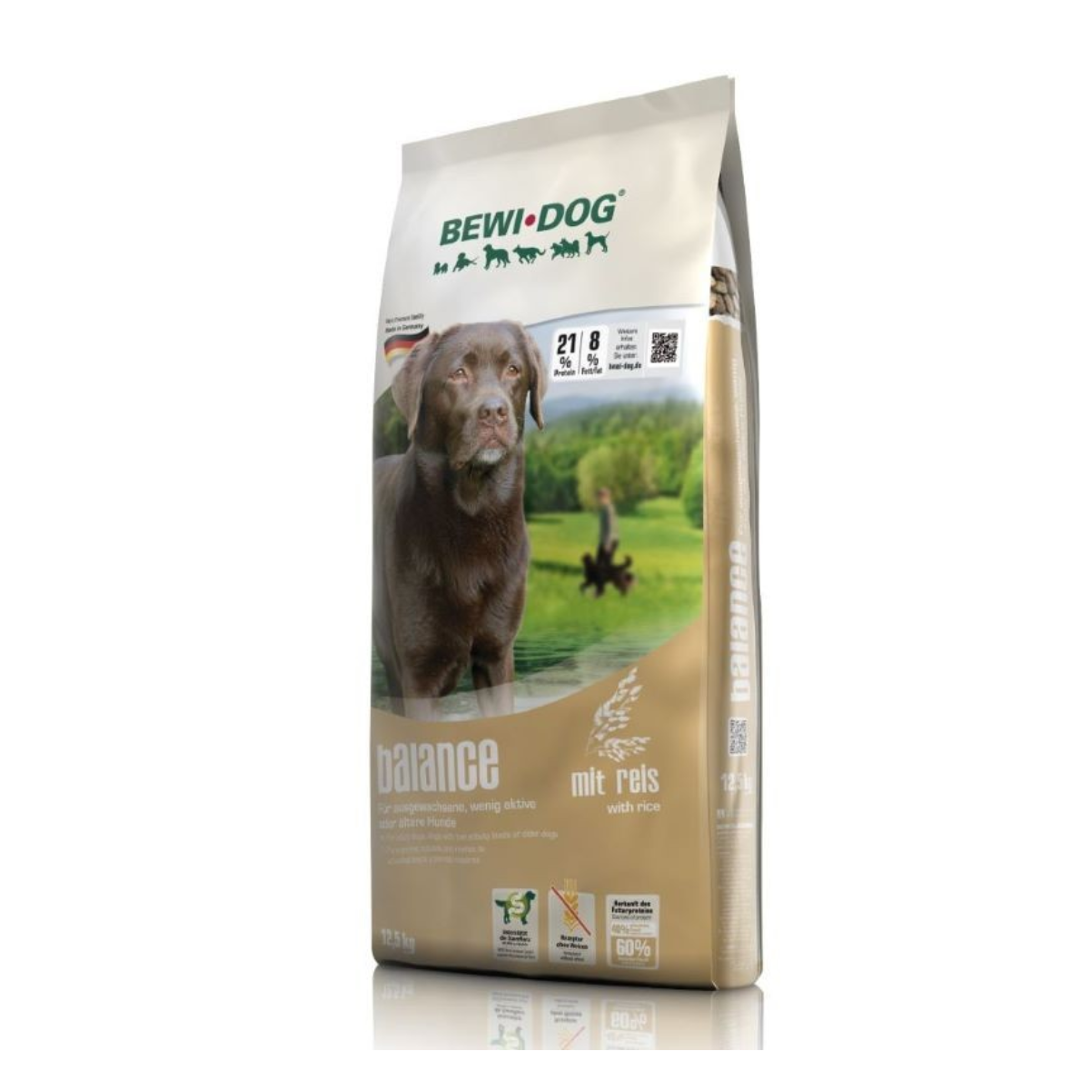 Alimento completo para perros mayores y/o con bajos niveles de actividad. ¿Su perro no es tan enérgico, es mayor o tiene un poco de sobrepeso? Entonces recomendamos BEWI DOG® balance con contenido energético reducido, arroz fácilmente digestible y bajo contenido de grasa.