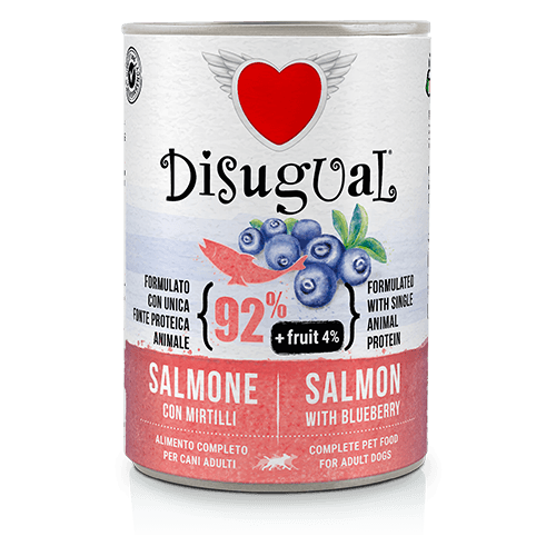 Disugual +Fruta es un alimento húmedo completo, formulado con salmón como única fuente de proteína animal y enriquecido con arándanos para ofrecer un toque extra de dulzura y frescura. Con un 92% de salmón y un 4% de arándanos, esta receta está diseñada para satisfacer a los perros más exigentes, brindando una nutrición completa y equilibrada.