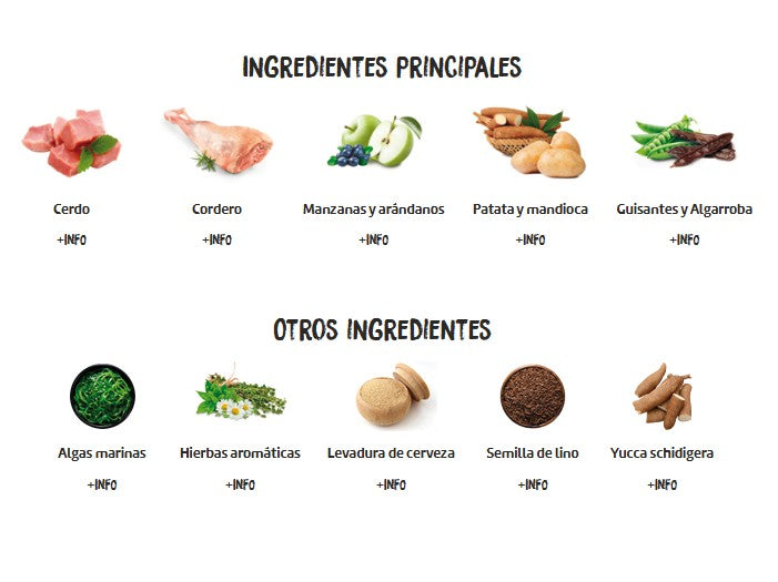 Pienso grain free para perros adultos con proteína de cordero fresco de alta digestibilidad. Sin cereales, con ingredientes naturales y prebióticos para favorecer la salud intestinal y articular.