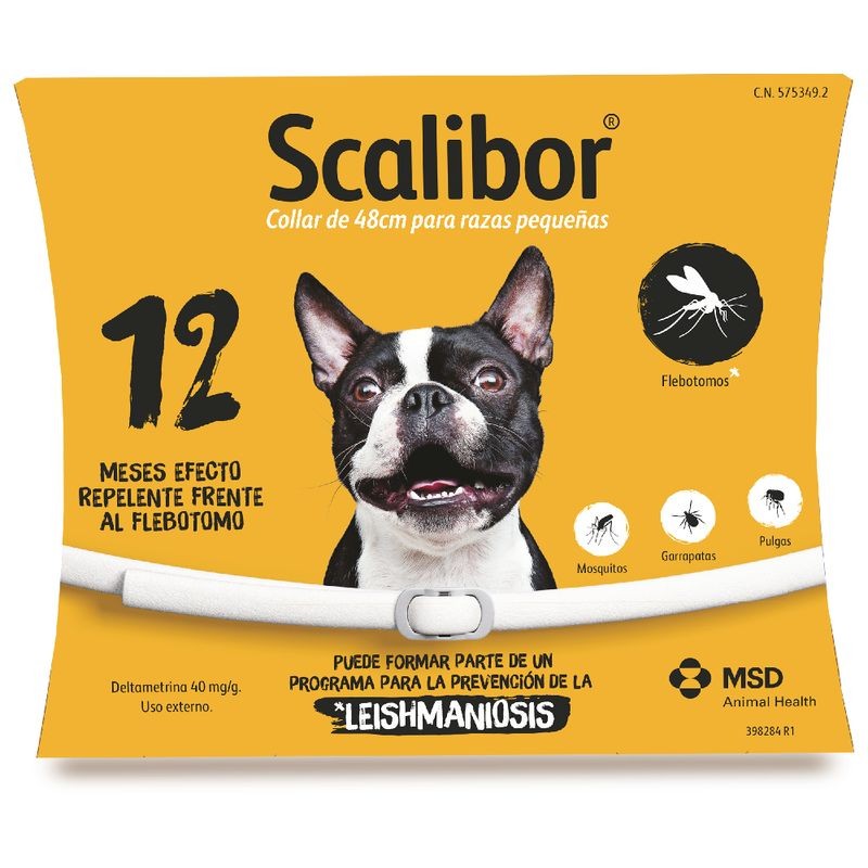 Efecto repelente (antialimentación) durante 12 meses para flebotomos (Phlebotomus perniciosus), efecto repelente durante 6 meses para mosquitos Culex pipiens. Prevención de infestaciones de pulgas (4 meses) y garrapatas (6 meses). NO en animales de menos de 7 semanas de edad.